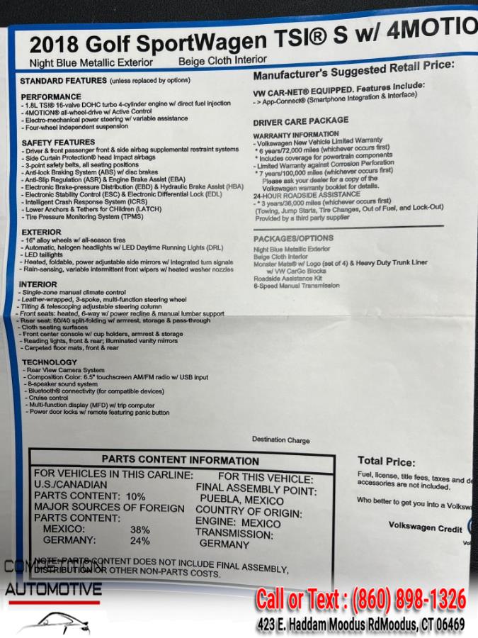 Pictures of used 2018 Volkswagen Golf SportWagen 1.8T S Manual 4MOTION in Moodus, CT
